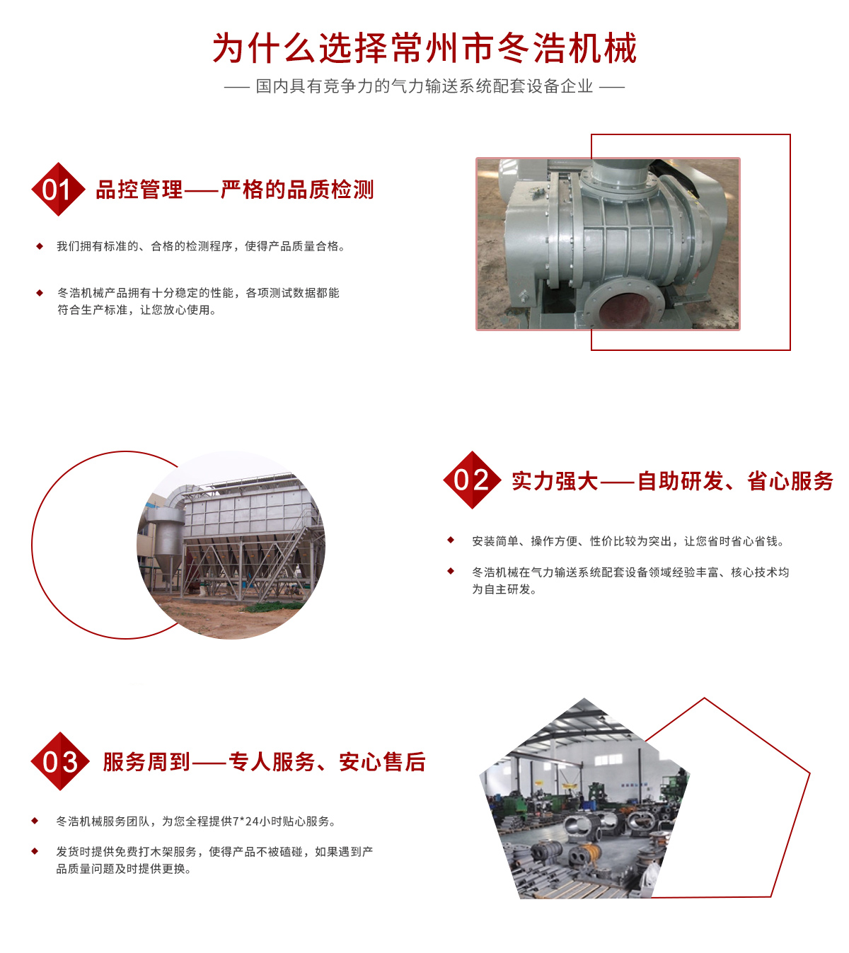 常州市冬浩機(jī)械有限公司占地面積5000平方米,擁有一支專(zhuān)業(yè)的科技研發(fā)團(tuán)隊(duì)和配備專(zhuān)業(yè)的生產(chǎn)設(shè)備。專(zhuān)業(yè)致力于氣力輸送系統(tǒng)配套設(shè)備的研發(fā)、生產(chǎn)及銷(xiāo)售。產(chǎn)品在實(shí)際應(yīng)用中不斷創(chuàng)新、不斷升級(jí),現(xiàn)已對(duì)接實(shí)現(xiàn)自動(dòng)化、智能化、人性化。實(shí)踐證明公司生產(chǎn)的吸糧機(jī)系列、高溫羅茨風(fēng)機(jī)系列、關(guān)風(fēng)機(jī)系列、氣力輸送設(shè)備系列、特殊工況訂制系列的產(chǎn)品被廣泛運(yùn)用于石油化工、油脂、化工干燥、除塵、冶金、環(huán)保、電子、煤炭、建筑、電力機(jī)械、糧食、飼料等行業(yè)。為解決輸送、搬運(yùn)等環(huán)節(jié)中節(jié)約大量的人力、財(cái)力;從而提高了生產(chǎn)效率。